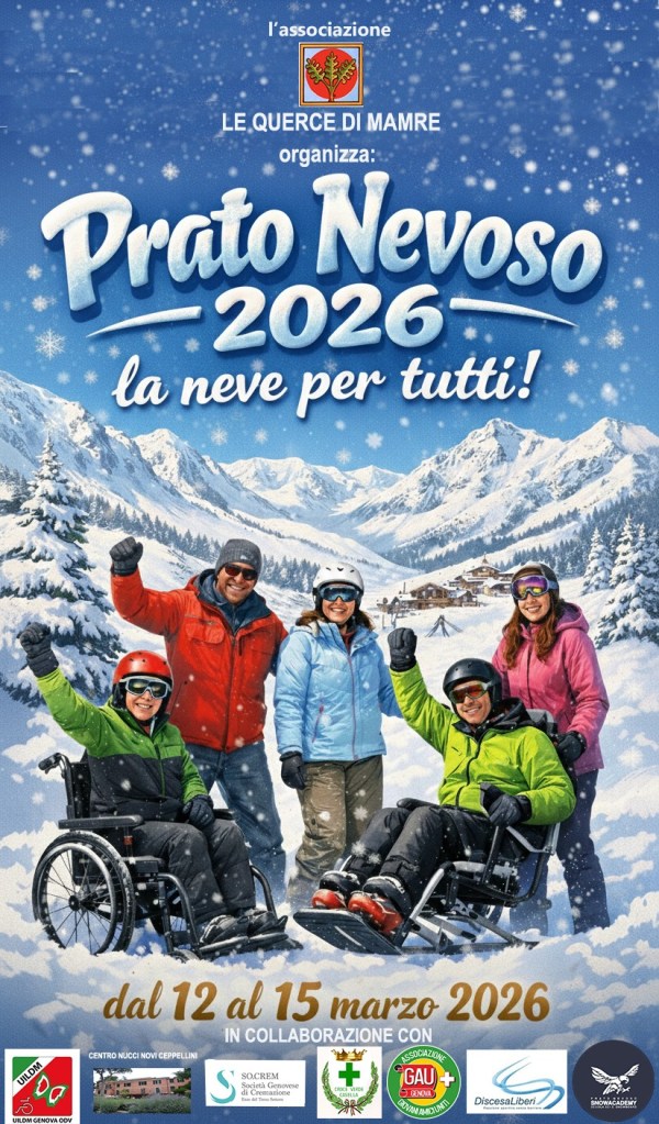 Prato Nevoso 2026 – la neve per tutti è il nostro appuntamento annuale con la montagna e l’inclusione: un’esperienza di autonomia, amicizia e condivisione vissuta insieme a persone con disabilità, volontari e partner del territorio. Un progetto che, anno dopo anno, trasforma la neve in opportunità e libertà. ❄️
