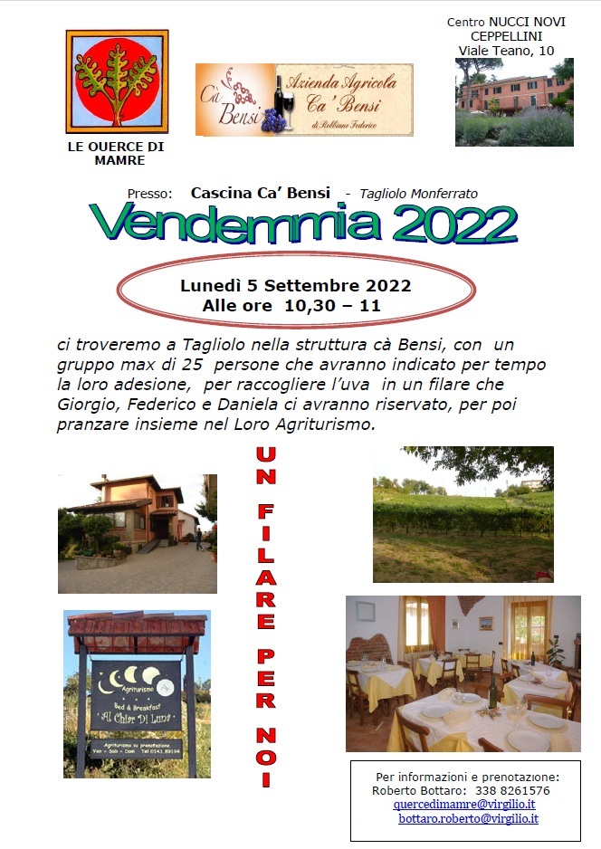 Anche in questo 2022, come da diverso tempo, ormai, ci siamo presi un giorno per passare insieme una giornata speciale: fare per un giorno vendemmia, mangiare tutti assieme e progettare il ritorno a Cà Bensi, per ritirare il vino della nostra uva . . .