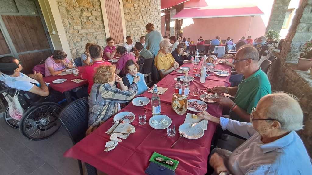 Dopo la vendemmia ci siamo spostati all’agriturismo Al Chiar di Luna, dove ci attendeva un pranzo conviviale: una lunga tavolata, piatti genuini e il piacere di ritrovarsi insieme. È stato un momento di festa, di dialogo e di amicizia, capace di rafforzare i legami che ci uniscono.
